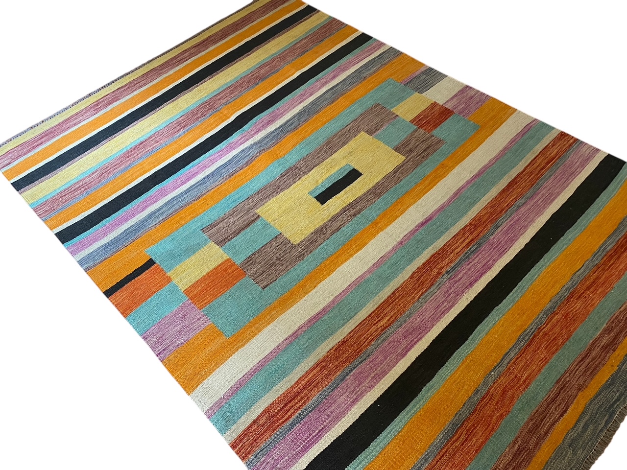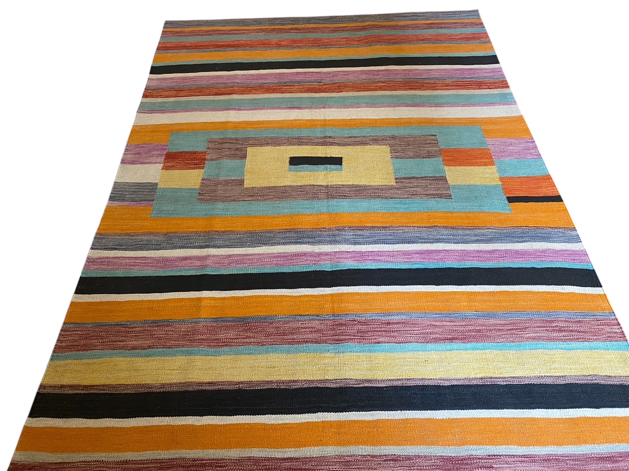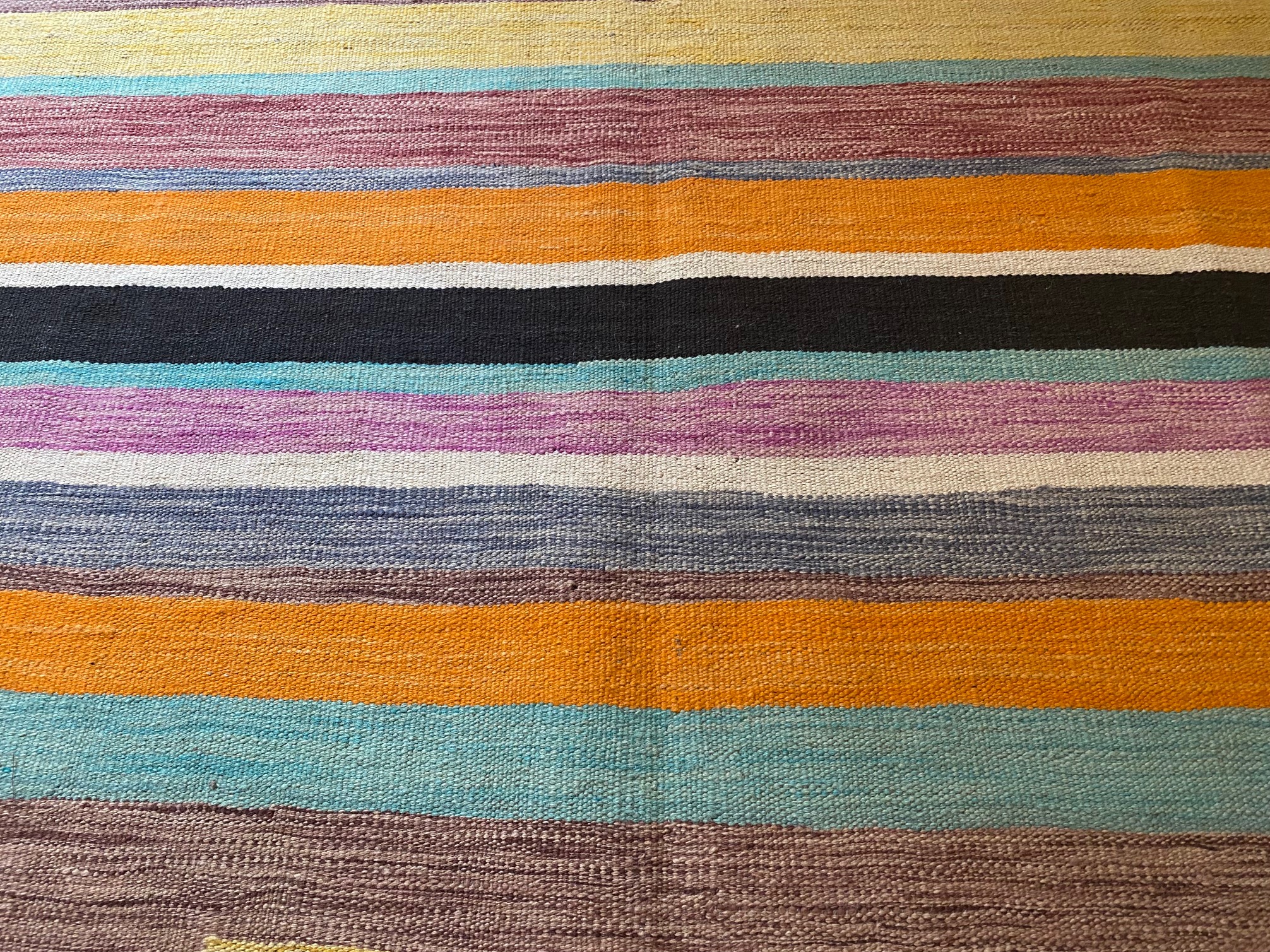 Bringe Farbe und Stil in dein Zuhause mit diesem einzigartigen, handgewebten Kelim.