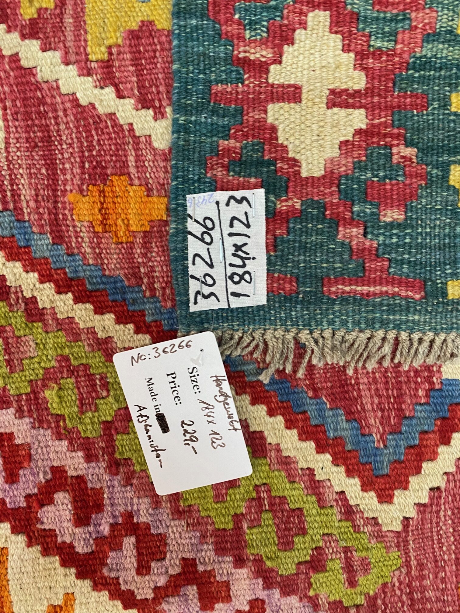 Schreibe die erste Rezension für „Afghan Kelim Teppich 184×123 Handgewebt (Verkauft)“