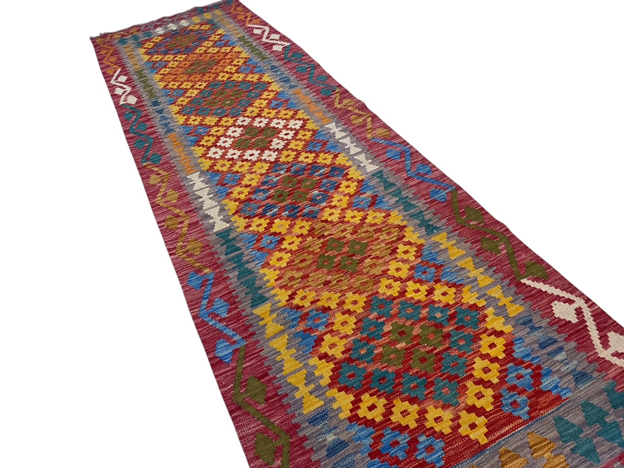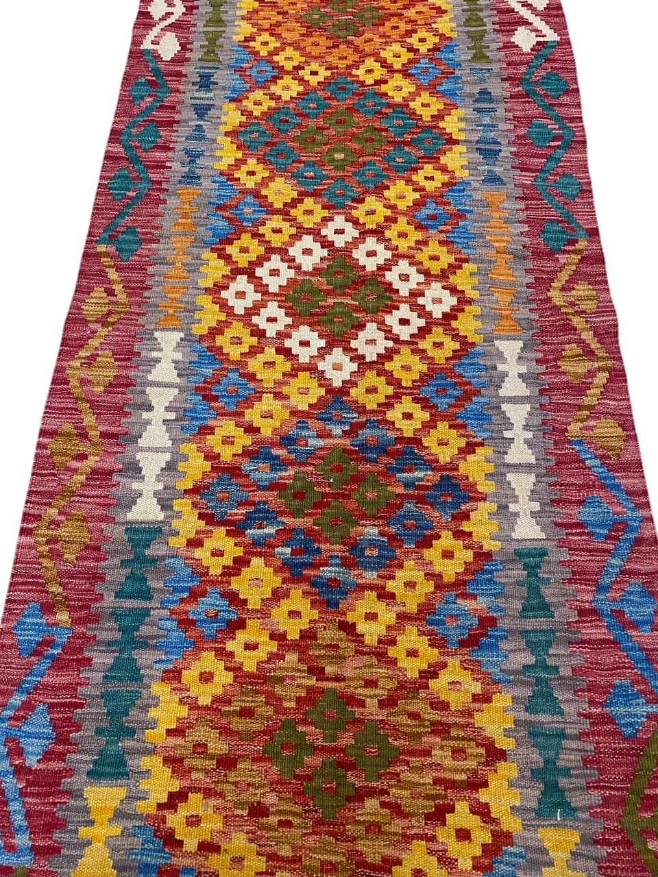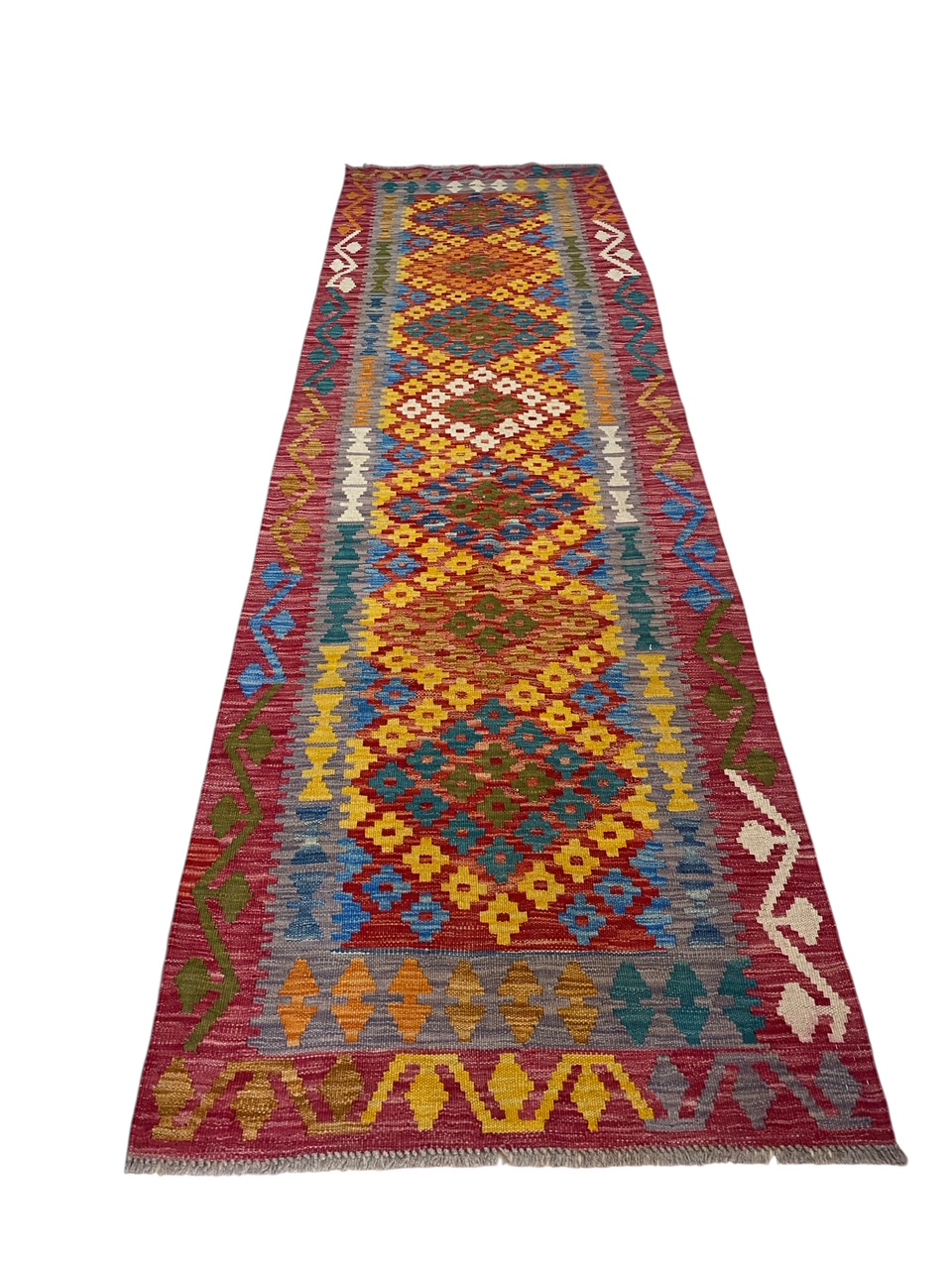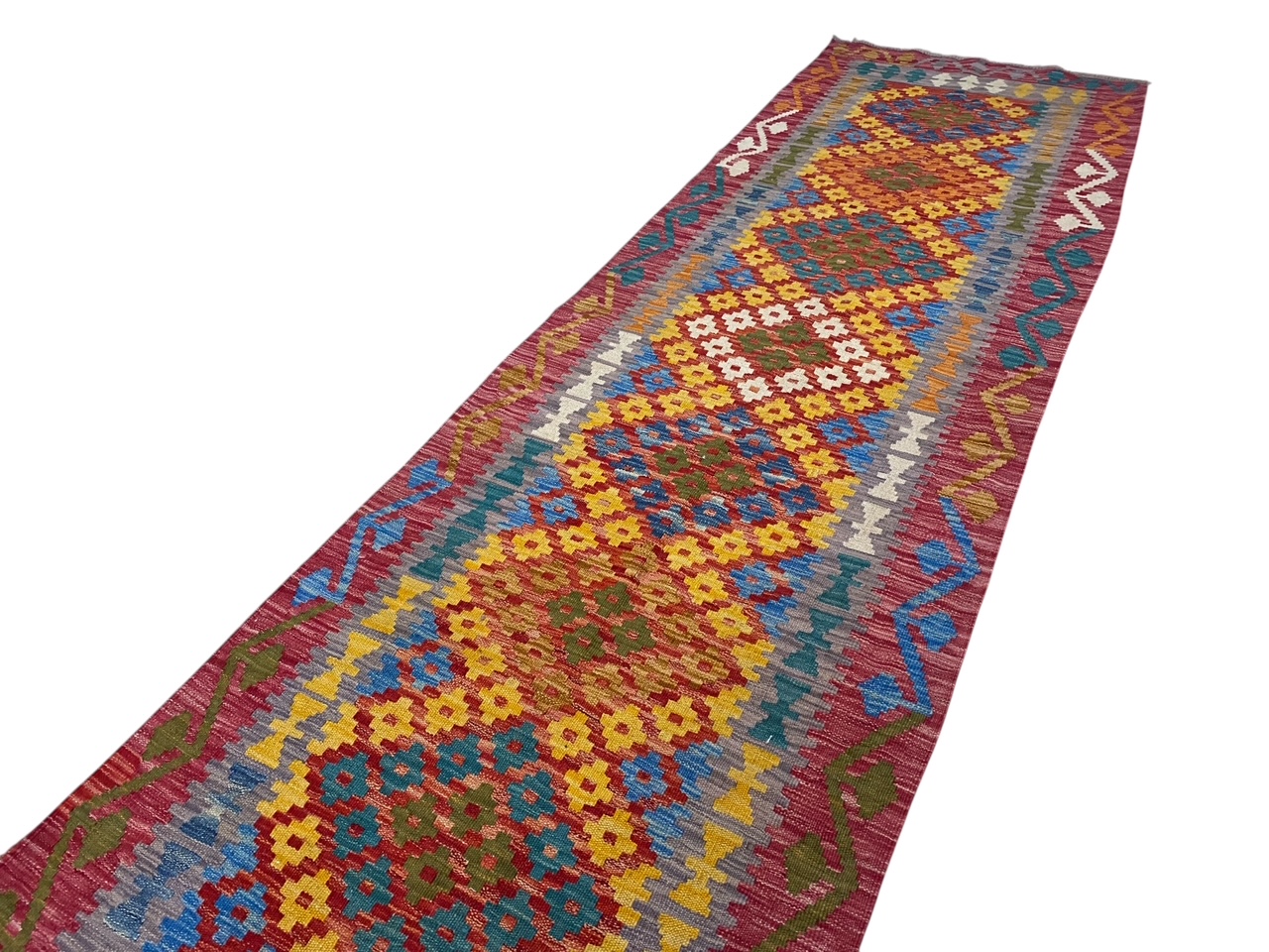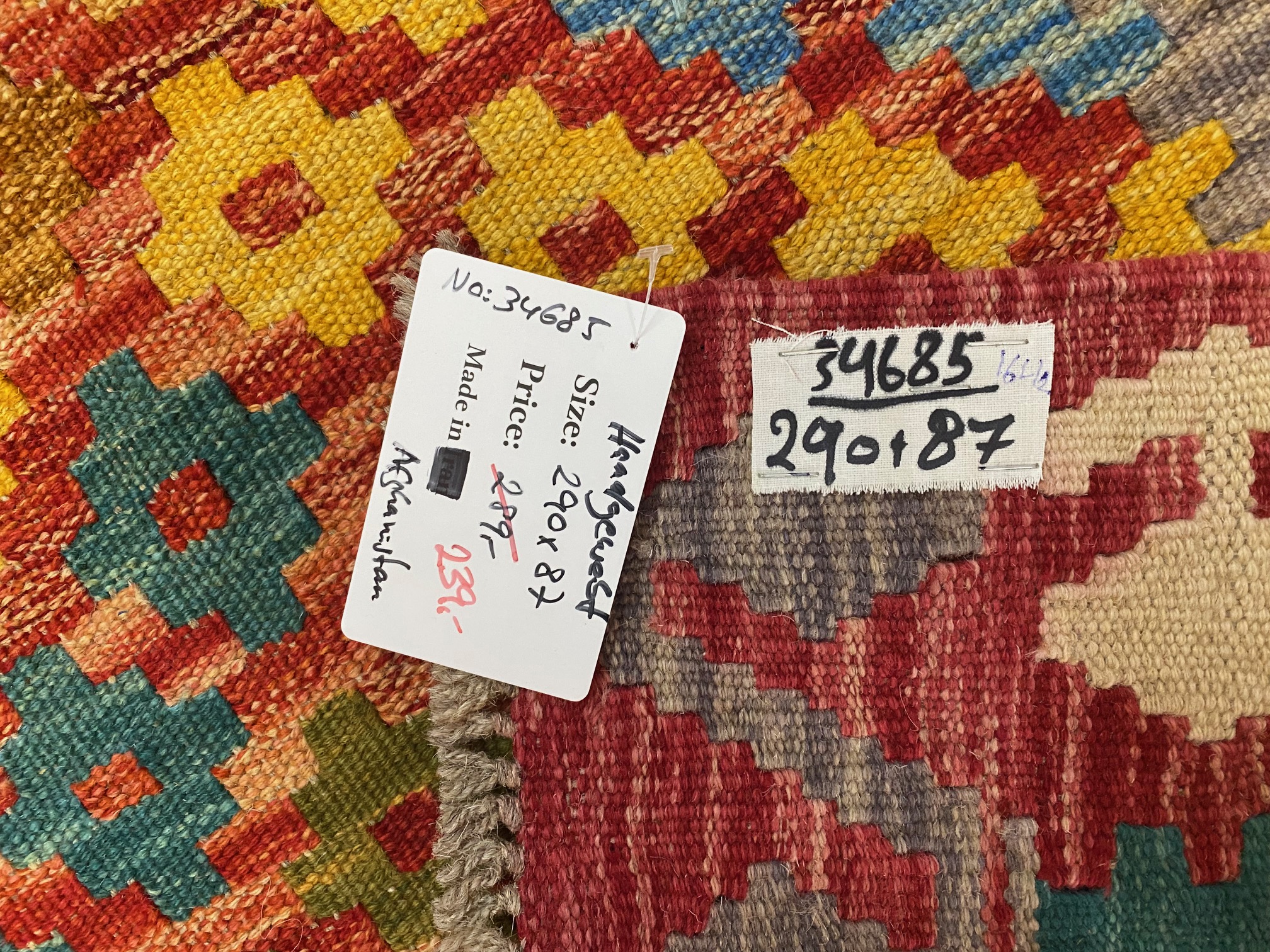 Afghan Mina Kelim Läufer Teppich 290×87 Unikat
