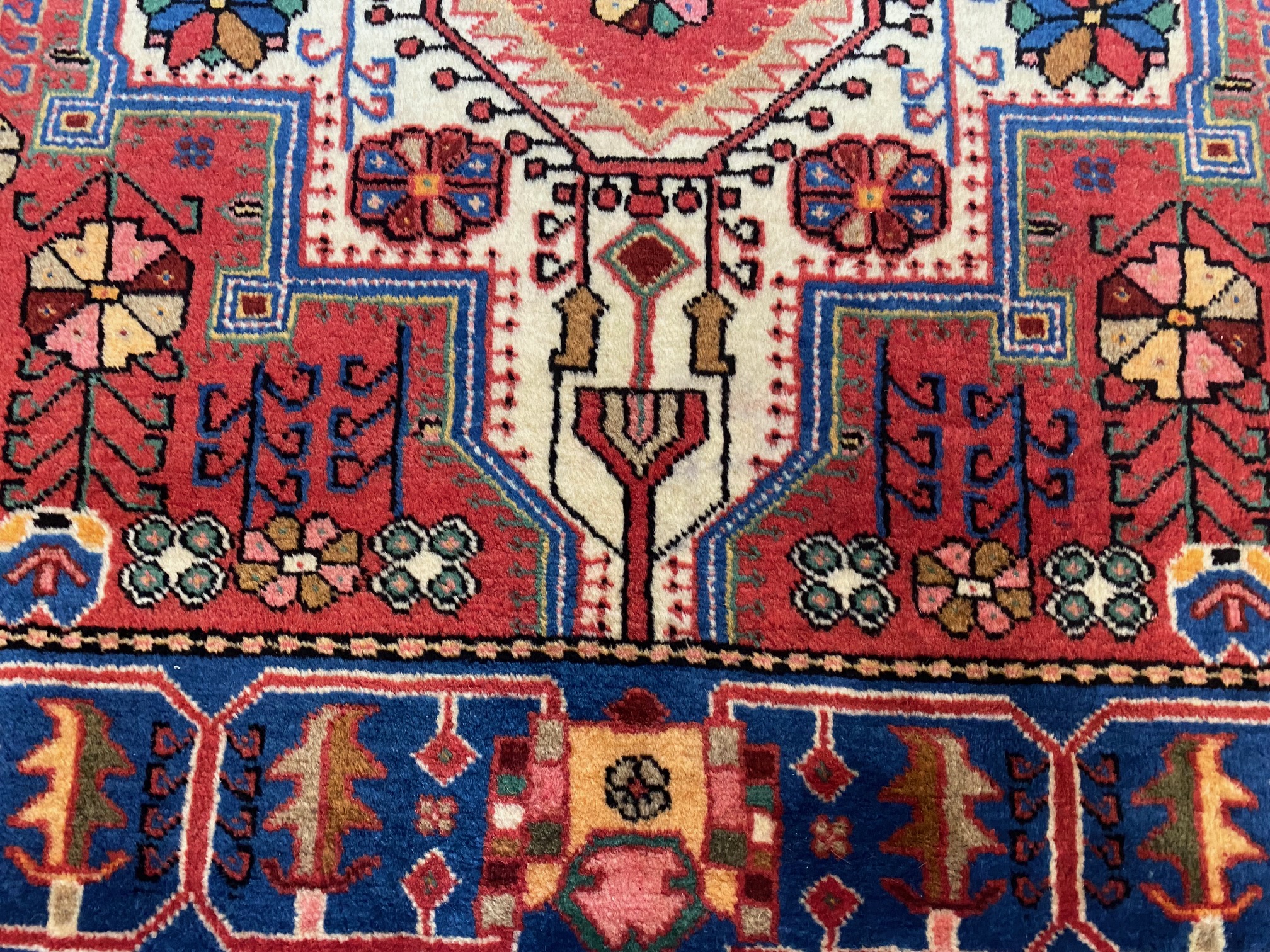 Dieser echte Perserteppich aus Nahavand (Iran) ist ein handgeknüpftes Unikat – gefertigt aus handgesponnener Schafswolle und mit pflanzlichen Farben gefärbt.